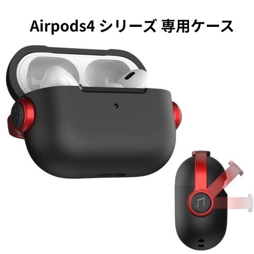 Airpods 4 ケース ロック付き カラビナ付き 装着充電可能 耐衝撃 AirPods 第4世代 ケース TPU 軽量 キズ防止 おしゃれ ワイヤレス充電対応 保護カバー スタンド機能付き