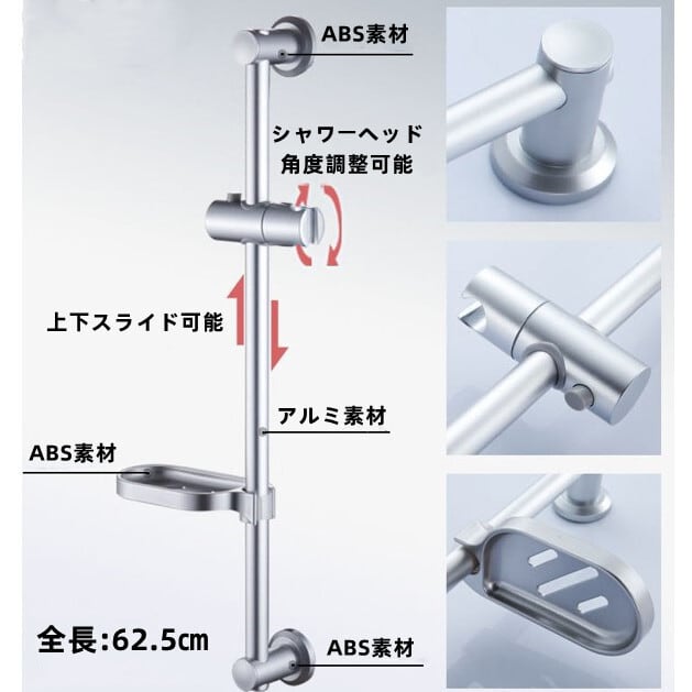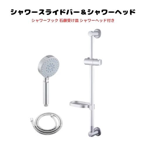 シャワースライドバー&シャワーヘッド アルミ製 スライドバー シャワーフック付き 簡単設置 52cm可動幅 便利 スライド シャワ角度調節可能 長さ62.5cm【あす楽】 母の日 父の日 プレゼントyp