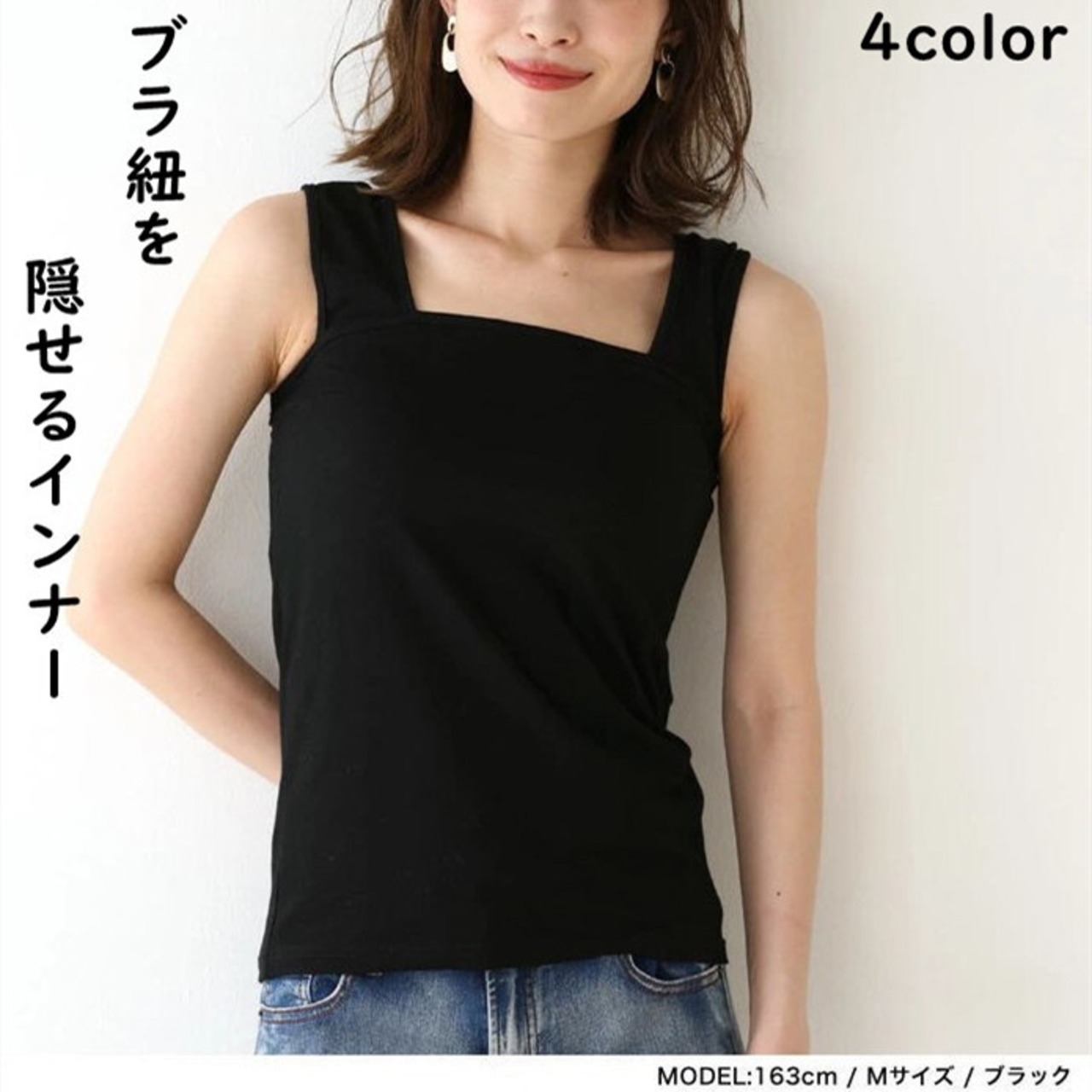 レディース ブラ紐隠しインナー タンクトップ キャミソール ノースリーブ トップス インナー シンプル ブラ紐を隠せるインナー