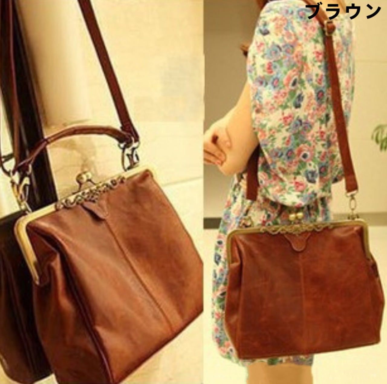アンティーク調 がま口 ショルダー ハンドバッグ 2WAY GB1 ブランド デザイン おしゃれ 大きめ クラシカル シンプル 格安 即納