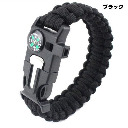 パラコード製のブレスレットは、強靭な素材で作られており、耐久性にも優れています。緊急時にはパラコードを解いて使用することができるため、道具が足りない時でも柔軟に対応可能です。ファイヤースターターで火を起こし、コンパスで方向を確認することができます。これ一つで多くの機能を備えています!
