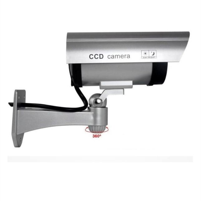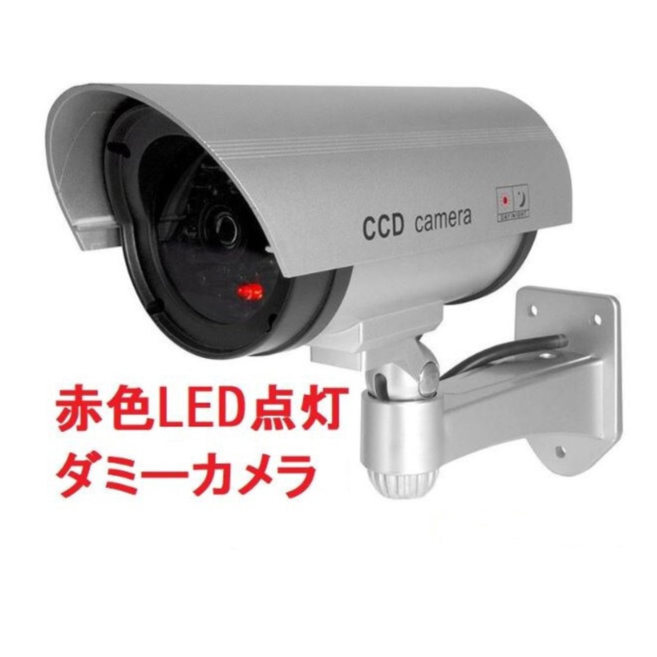 赤外線型 ダミーカメラ 電池式 簡易防水 シルバー 赤色LED 防犯 犯罪 いたずら 放火 室内 屋外 犯罪 抑止力 証拠 窃盗 空き巣 対策