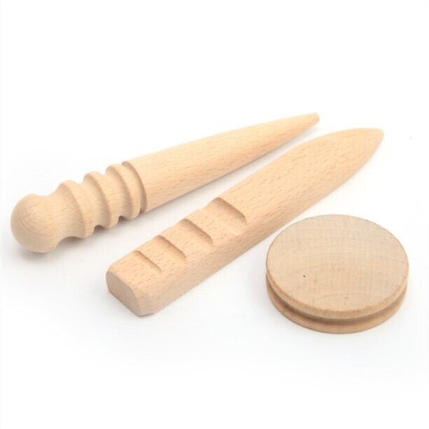 3点セット 木製 コーンスリッカー レザー クラフト へり磨き 工具 格安 即納