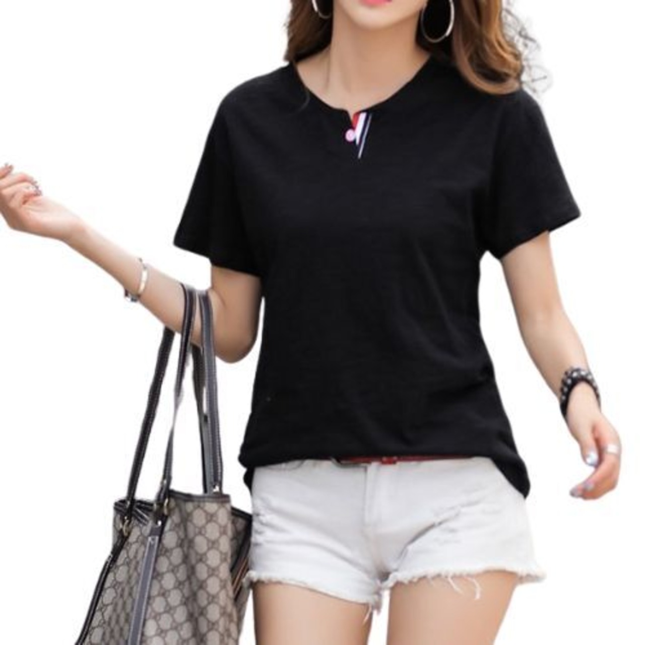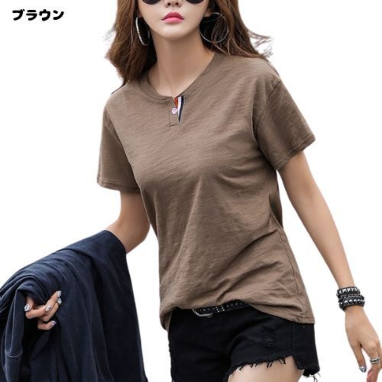 胸元 トリコロール 綿100% ブラック ホワイト ブラウン Tシャツ ベーシック カットソー 半袖 Tシャツ 無地 シンプル アクセント