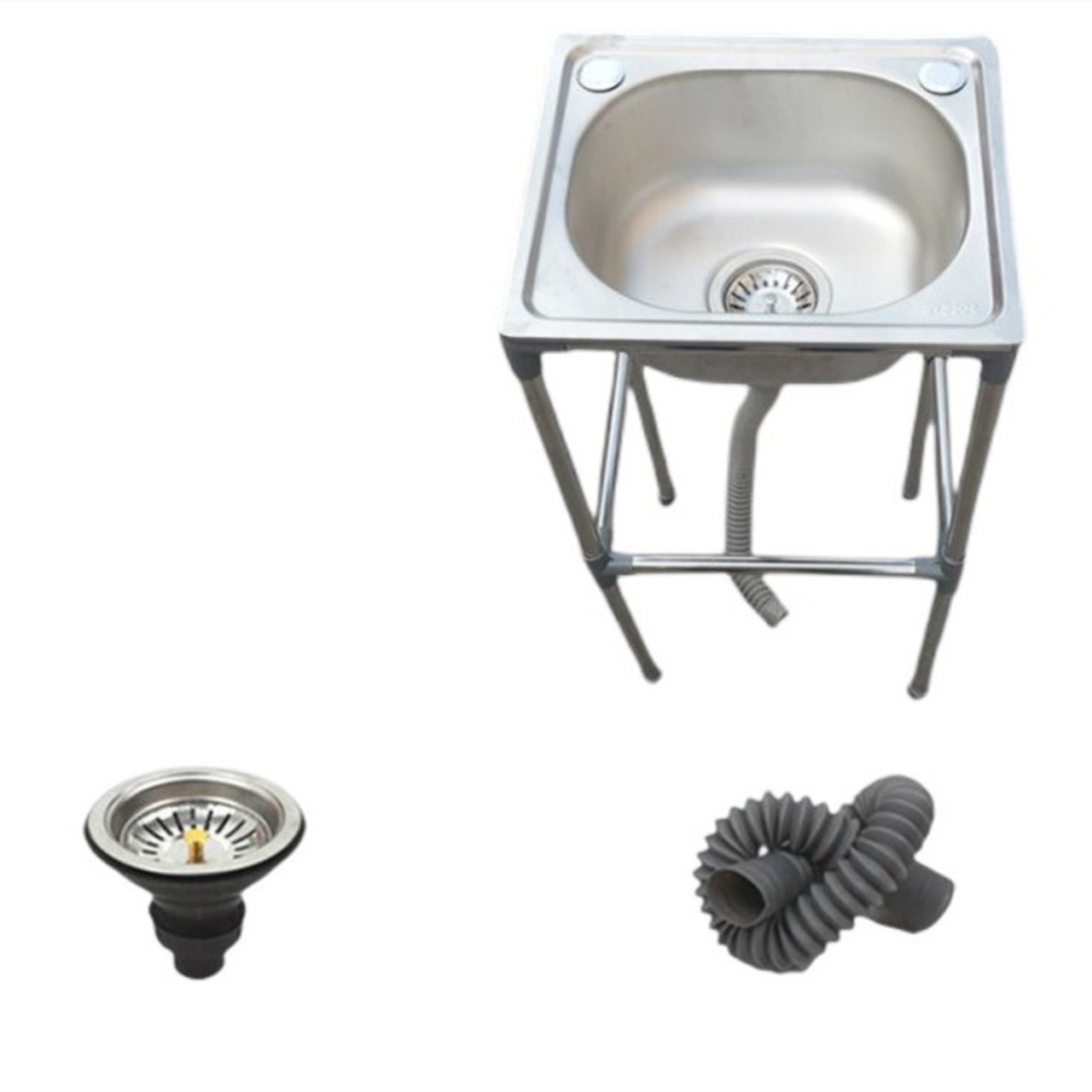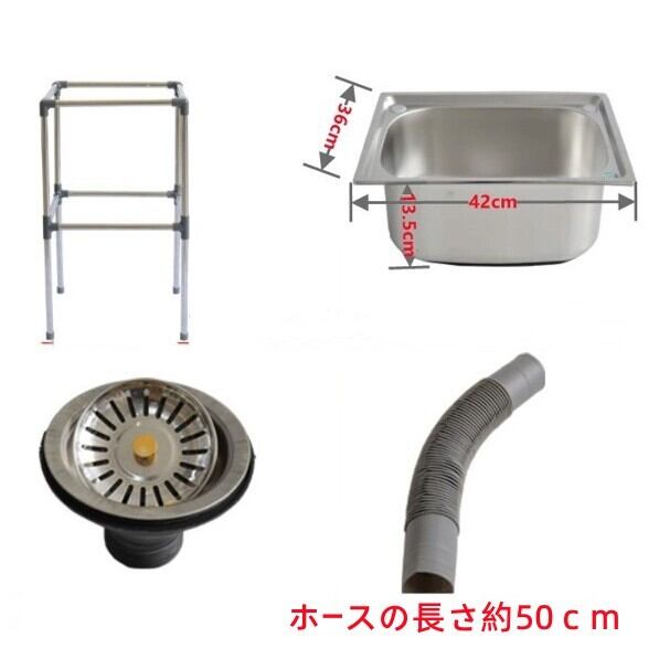 自立型シンク 流し台 ステンレス製 蛇口左右に付けれる 屋外 簡易式 ガーデンシンク コンパクト 屋外BBQ アウトドアに適用 錆びにくい 簡単取付 工場 農園